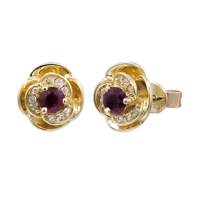 Indulge in elegance with these breathtaking Mozambique Ruby Gold Earrings. Crafted from 14K yellow gold, these earrings showcase AAA rubies, complemented by brilliant-cut diamonds. Perfect for special occasions, they add a touch of luxury to any ensemble. Pair with an evening gown for a sophisticated look, or elevate your daywear with these stunning pieces.