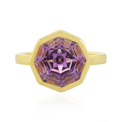 Discover the geometric allure of this octagon-cut Brazilian amethyst, tastefully set in a gold-plated 925 sterling silver ring. The 3.688 carat gemstone exhibits a rich, violet hue that gleams with every movement, encapsulated in a modern, sleek design that highlights the gem's intricate facets. Perfect for adding a pop of color to your ensemble, this ring is a versatile accessory for day-to-night looks and special occasions alike.