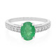 Discover the allure of the Bahia Emerald Sterling Silver Ring. Featuring a captivating 0.93 ct oval-cut emerald from Brazil, this ring is accentuated with 12 round brilliant-cut zircons. Crafted in 925 sterling silver with a platinum plating, it exudes elegance. Perfect for both everyday sophistication and special occasions, this ring effortlessly complements both casual and formal attire, adding a touch of green elegance to any look.