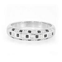 This exquisite band exudes sophistication with its striking contrast of black spinel and sparkling zircon. Meticulously set in 925 sterling silver, the 16 Thai black spinels, together with 15 Cambodian zircon stones, have a combined weight of 0.536 carats. Measuring 26x25.5 mm, the ring showcases a patterned brilliance that catches the eye. Perfect for both casual and formal attire, it promises to be a versatile addition to any jewelry collection.