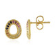 Embrace elegance with these stunning gold-plated sterling silver earrings, adorned with a vibrant array of sapphires from Madagascar and Thailand. Featuring blue, pink, yellow, orange, and green round-cut sapphires, these earrings offer a delightful spectrum of colors. Perfect for both everyday style and special occasions, they are designed to add a touch of sparkle to any outfit.