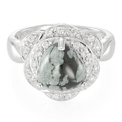 Experience the allure of this Botswana Agate Silver Ring, featuring a 3.49 ct pear-shaped cabochon. The stone's elegant gray hues are perfectly complemented by 47 brilliant-cut white topaz accents. Crafted in 925 sterling silver, this ring exudes sophistication. Ideal for both casual and formal settings, it pairs beautifully with monochrome outfits, adding a touch of contemporary elegance.