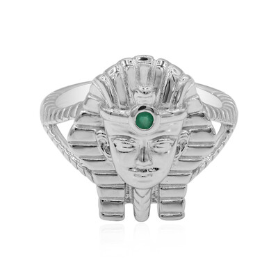 Inspired by the grandeur of ancient Egypt, this sterling silver ring showcases a striking pharaoh motif, crowned with a radiant 0.03 carat Brazilian emerald. Weighing approximately 4.48 grams, the meticulous craftsmanship unfolds in the detailed hieroglyphs that frame the central gemstone. Perfect for adding a touch of mystique to your ensemble, this ring is a conversation starter and a testament to timeless beauty. Ideal for themed events or as a bold statement piece in your daily wear.