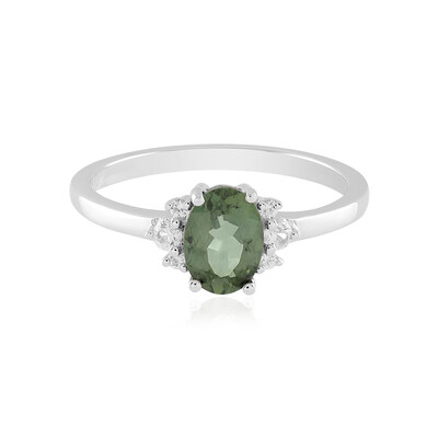 Experience the allure of Brazil with this captivating oval-cut Chrome Apatite ring, framed by scintillating Cambodian Zircons totaling 0.845ct. The central stone's lush green hue, complemented by the sparkle of Zircon side stones, is elegantly mounted on 925 sterling silver. Ideal for adding a touch of sophistication to any outfit, this ring is a treasure for both casual wear and special events. Grace your hand with this piece of nature's art, bringing an exceptional blend of brilliance and charm to your jewelry collection.
