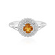 This charming ring features a sun-kissed Brazilian Citrine centrepiece, round cut to reveal its warm golden hues. Encircled by an array of 20 sparkling Cambodian Zircon stones, totaling 0.126ct, this 925 sterling silver ring exudes timeless sophistication. Weighing approximately 2.31g, the ring presents a total gem weight of 0.495ct. Pair this piece with your casual and formal attire alike, bringing a touch of elegance to every moment.