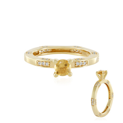 Discover the warm glow of this elegant gold-plated 925 Sterling Silver ring, featuring a round 0.45 ct Brazilian Citrine. The central gem is flanked by 42 sparkling Zircones from Cambodia, totaling 0.265 ct, set in a seamlessly crafted band with a total weight of 2.09 g. This ring's design is a testament to modern sophistication, perfect for adding a touch of sunlit luxury to your everyday wear or a special night out. Coordinate this piece with earthy tones or a crisp white ensemble for a chic, complementary look.