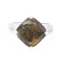Discover the prehistoric allure with this stunning ring, featuring a 5.62ct cushion-cut Dinosaurier Quartz, mined exclusively in the USA. Flanked by six sparkling white Topazes from Brazil, totaling 0.186ct, each exquisitely placed within the lustrous embrace of 925 sterling silver. This ancient treasure captures the essence of time in its unique patterns and hues, making it an exceptional conversation piece. Perfect for adding a touch of natural history to your wardrobe, this ring is suitable for both casual outings and more formal events.