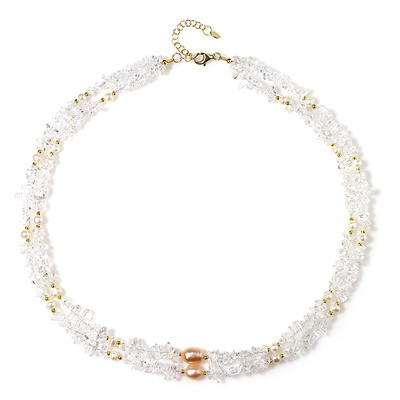 Embrace luxury with this stunning necklace, featuring an opulent blend of white Brazilian Quartz and golden USA Hematite with an impressive total carat weight of 137.912 ct. Peach-hued freshwater pearls from China add a touch of elegance, perfectly complemented by the lustrous white freshwater pearls nestled within. This exquisite piece is crafted from 925 sterling silver with a lustrous gold plating. The versatile 45-50 cm length makes it an ideal accessory for both casual and formal attire, promising to elevate any ensemble with its radiant charm.