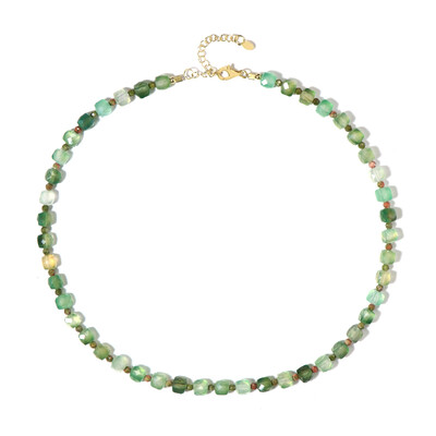 Discover the enchanting allure of this green agate necklace, featuring Brazilian agate and Mexican unakite beads. Crafted with 925 sterling silver and elegantly gold-plated, this piece radiates sophistication. Perfect for any occasion, it complements both casual and formal outfits. With a total weight of 107.502 ct, it's ideal for adding a touch of nature-inspired elegance to your wardrobe.