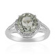 Showcase subtle sophistication with this Brazilian Green Amethyst ring, crowned with sparkling Zircon accents. The stunning 2.189ct round-cut Amethyst is complemented by the shimmer of 64 Tanzanian Zircons set in platinum-plated 925 Sterling Silver. This piece, with a total carat weight of 2.581ct, is an embodiment of elegance and an ideal choice for adding a touch of color to any outfit. Its size and sparkle make it perfect for special occasions or everyday luxury.