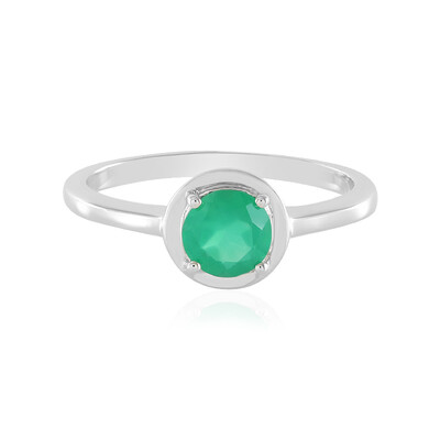 Indian Green Onyx Platinum-Plated Silver Ring, 1.005ct