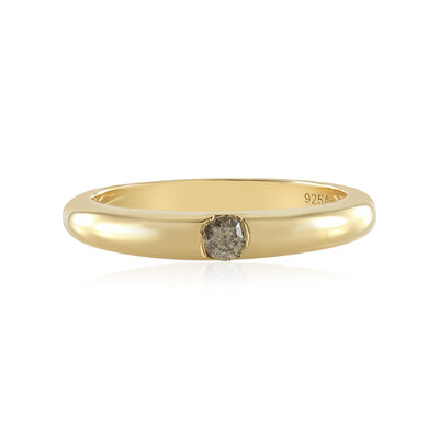 Indulge in the rich allure of this 0.09 ct round brilliant chocolate diamond ring. The exquisite stone sits nestled within a lustrous gold-plated 925 sterling silver band, weighing approximately 2.66 g. Its smooth, contemporary design ensures seamless integration into any jewelry collection. This ring is not just an accessory but a statement piece, ideal for both casual brunches and elegant evening events. Let this unique piece of art become a treasured part of your jewelry ensemble.