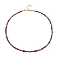 Introducing a dazzling necklace featuring an exquisite combination of vibrant rubies, sapphires, emeralds, and imperial topaz beads. Each gemstone adds a unique sparkle, enhanced by the gold plating on 925 sterling silver. Perfect for an elegant evening or a chic daytime look, this necklace is versatile and luxurious. Pair it with a simple dress or a flowing blouse to showcase its spectacular color and craftsmanship.