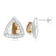Discover the subtle charm of these sterling silver earrings, flaunting trilliant cabochon-cut magnesite stones, each encased in a sparkling halo of brilliant-cut white topazes. Weighing a total of 6.62 carats, these exquisite ear studs exude sophistication with their unique 17 mm design. A perfect complement to your business casual or evening attire, they will add a touch of elegance to any ensemble.
