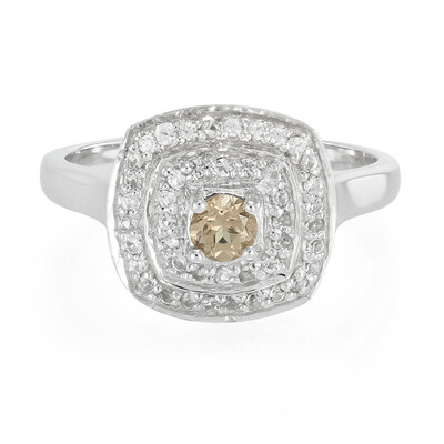 Discover the unique charm of this sterling silver ring, featuring a captivating Tanzanian Malaya Garnet at its heart, surrounded by brilliant white topaz. The central gemstone's subtle hue is perfectly complemented by the sparkling halo of gemstones, seamlessly blending sophistication with a modern edge. A perfect accessory to add a touch of elegance to both day and evening wear, this ring is not just a statement piece but a mark of refined taste.