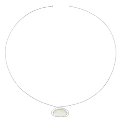 Discover the allure of minimalist elegance with this sophisticated sterling silver collar necklace, featuring a sleek and modern Chinese mother-of-pearl centerpiece. The pendant's unique 18x11 mm fancy shape glistens with natural iridescence, held within a fluid silver setting. Perfectly suited for both high-fashion events and casual gatherings, this 46 cm necklace enhances any neckline. Add this versatile piece to your collection and embrace the subtle shine it brings to every occasion.