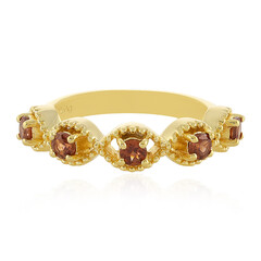 Discover the lustrous charm of our Gold-Plated 925 Sterling Silver Ring, featuring a quintet of radiant round-cut Mozambique garnets totaling 0.35ct. Each garnet, with its deep red hue, is meticulously set to showcase its fiery brilliance. The warm gold plating enhances the gemstones' rich color, creating an accessory that's perfect for adding a touch of sophistication to day-to-evening apparel. Ideal for garnet aficionados and those seeking a statement piece.