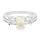 Discover the soft hues of Madagascar with this splendid sterling silver ring, featuring a 0.65 ct antique-cut orthoclase as its centerpiece. Measuring approximately 7x5 mm, the orthoclase is complemented by six pristinely faceted Brazilian white topaz stones, adding a subtle sparkle with their round brilliant cuts totalling 0.066 ct. This ring sports a total gem weight of 0.716 ct on a polished 925 sterling silver band, weighing approximately 2.64 g. Perfect for adding an elegant touch to your everyday attire or enhancing a special evening look, this ring is a timeless addition to any jewelry collection.