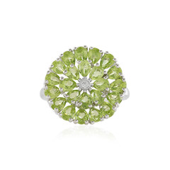 Introducing a stunning Peridot Silver Ring with an elegant design, perfect for any jewelry collection. Featuring an array of sparkling peridots in oval, teardrop, and round cuts, this ring's intricate pattern exudes sophistication. Crafted from platinum-plated 925 sterling silver, it adds a touch of luxury to any outfit. Ideal for special occasions or as a statement piece for everyday wear.