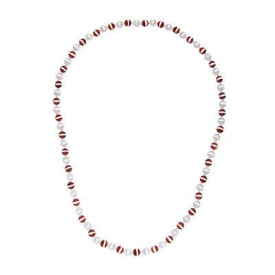 Discover the allure of Brazilian red and white agate in this elegant bead necklace. With a total carat weight of 261 ct, each 8 mm bead offers a harmonious blend of vibrant red and calming white tones. At a comfortable length of 70 cm, it is a versatile addition to any outfit, perfect for both casual and formal occasions. Pair with a simple dress or a chic blouse to make a sophisticated statement.