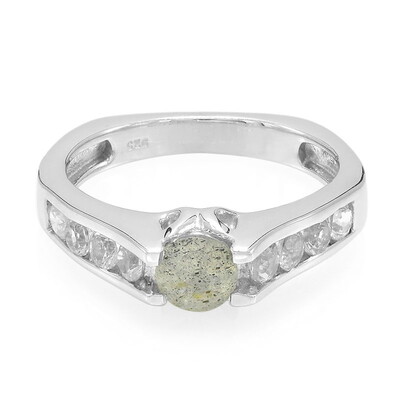 Introducing a stunning piece that captures the essence of refinement - our Spectrolite ring, adorned with a central round-cut gemstone, is a treasure from Romania, weighing 0.42ct. Encircled by 8 brilliant white Topazes from Brazil totaling 0.647ct, this ring sparkles with an undeniable allure. Crafted in high-quality 925 Sterling Silver, the ring weighs approximately 3.27 grams, symbolizing durability and elegance. Its unique spectral play of colors makes it a versatile addition to any jewelry collection, perfect for adding a touch of sophistication to both casual and formal ensembles.