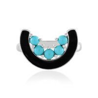 Discover the allure of the Sleeping Beauty Turquoise Silver Ring. Featuring five stunning round cabochon turquoise gemstones from the USA, this ring offers a total carat weight of 0.59 ct. The 925 sterling silver is plated for added brilliance, complementing the vibrant blue hues. Perfect for a chic daytime look or an elegant evening ensemble, it's a versatile addition to any jewelry collection.
