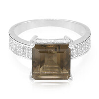 Introducing our Brazilian Smoky Quartz ring, a symphony of elegance with a sophisticated 2.81 carat center stone in a square cut. Surrounded by an array of brilliant white topazes, totaling 0.302 carats, this 925 sterling silver piece radiates with glamour. At approximately 9 mm, the smoky quartz's deep hue contrasts beautifully against the sparkling topazes and the sleek silver band. Ideal for evening events or as a chic upgrade to your office attire, this ring promises to be a timeless addition to any jewelry collection.