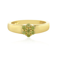 Discover the allure of our Brazilian Sphene ring, a treasure crafted in gold-plated 925 sterling silver. Each of the seven sparkling round-cut sphenes, totalling 0.252 carats, dazzle with their unique green hues. The ring's band presents a sleek, modern design with a weight of approximately 1.97 grams, making it a lightweight yet luxurious choice. Ideal for accessorizing everyday outfits or adding a sophisticated touch to evening wear, this ring promises to be a conversation starter at any gathering.