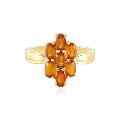Imbued with the warmth of a sunset, this gold-plated 925 sterling silver ring features a captivating cluster of seven oval-cut orange kyanite gems from Tanzania, totaling 1.924 carats. The vibrant hues are reminiscent of a serene dusk sky, making this ring a perfect accessory for both day and night ensembles. Its compelling charm is enhanced by the careful gold plating over sterling silver, giving it an aura of understated elegance that suits any occasion. Pair this ring with earth tones or contrast it with cool blues for a striking appearance.
