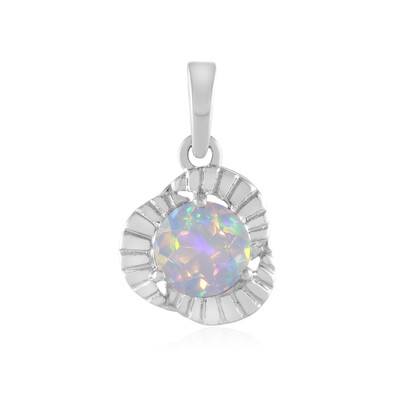 This exquisite pendant showcases a mesmerizing Welo Opal from Ethiopia, beautifully set in lustrous platinum-plated 925 Sterling Silver. The opal, weighing 0.441 carats, dazzles with its vibrant play of colors. Ideal for any occasion, this elegant piece adds a touch of sophistication to both casual and formal outfits. Perfect as a gift or a special treat for yourself.