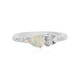 Discover the captivating allure of this exquisite ring, featuring a pear-shaped Ethiopian Welo Opal, renowned for its mesmerizing play of color. Adorning the band, 15 sparkling Zircons from Cambodia add a touch of timeless elegance. Crafted in 925 sterling silver with a platinum finish for enhanced durability and shine, this ring weighs approximately 2.13 grams. Whether dressing up for a special occasion or adding a splash of glamour to your everyday wear, this ring is sure to enchant.