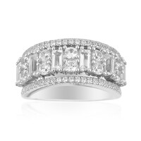 Experience the radiant sparkle of this striking ring, featuring an intricate arrangement of six baguette-cut Nigerian white topazes totaling 0.689 carats and fifty-six round-cut zircons from Tanzania summing up to 1.1 carats. Crafted in polished 925 sterling silver, this timeless piece boasts a total gem weight of 1.789 carats, perfectly accentuated by the luster of the precious metal. Its band presents a substantial feel with a weight of approximately 4.38g, while offering a luxurious 21x21 mm ring face. Ideal for evening events and special occasions, it's a dazzling addition to any jewelry collection.