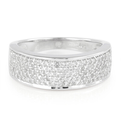 This lustrous band presents an array of 123 round brilliant-cut white topazes, sourced from the lush locales of Brazil, with a total carat weight of 0.684 ct. Crafted in high-quality 925 sterling silver, its combined weight of approximately 3.66 g ensures a solid feel with a width of 21.5 mm for a significant presence on the hand. With its radiant shimmer and timeless design, this ring promises to complement both casual ensembles and evening wear, shining brightest at celebrations and romantic dinners alike.