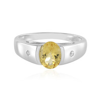 Discover the sunny charm of this stunning ring, featuring a 0.975ct oval-cut Brazilian Yellow Beryl center stone, adorned by two sparkling White Topazes with a total carat weight of 0,033ct. Crafted from high-quality, platinum-plated 925 Sterling Silver, this ring exudes a contemporary elegance that's perfect for day-to-day sophistication or evening glamour. Ideal for those who adore unique gemstone jewelry with a hint of tropical warmth, this piece could become the shining star of your collection.
