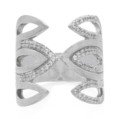 Discover the allure of intricate design with this captivating 925 sterling silver ring, adorned with 50 sparkling Cambodian zircons totaling 0.639 carats. Each stone is masterfully cut in a round brilliant shape, measuring approximately 1.2mm, offering a dazzling display of craftsmanship. The ring's unique crisscross pattern, accompanied by shimmering zircons, creates a modern statement piece perfect for various occasions. This chic accessory will enhance your collection and can accentuate any ensemble, from a casual daytime outfit to an elegant evening dress.